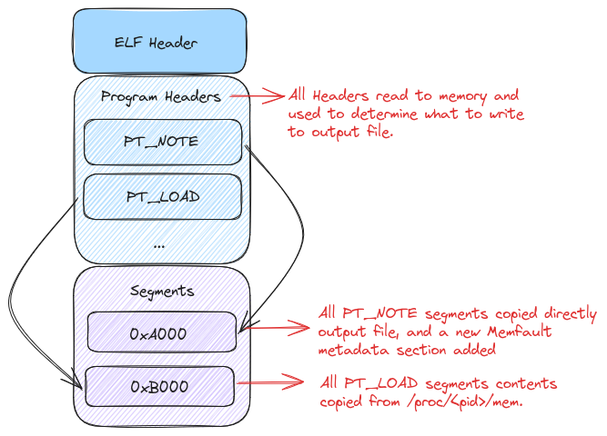 PT_LOAD segment in the coredump. Instead of storing this in memory we’ll