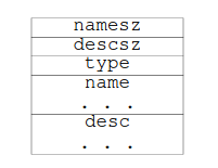 the size of both the name and the descriptor. The name field is a string that